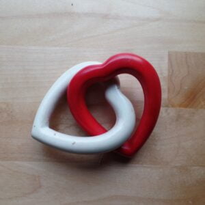 Twee harten ineen geknoopt gemaakt van Kisii steen (speksteen).