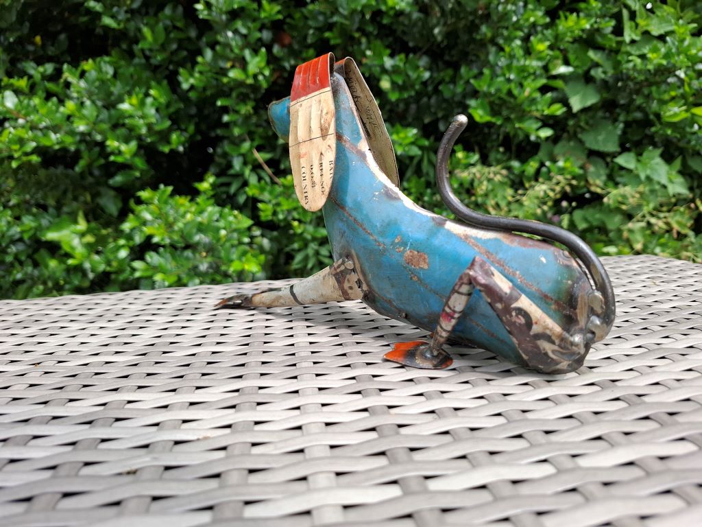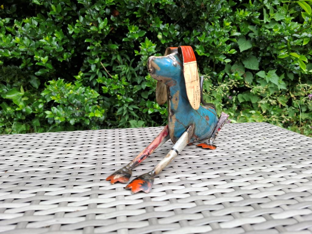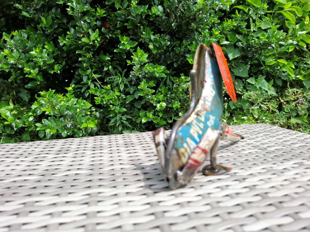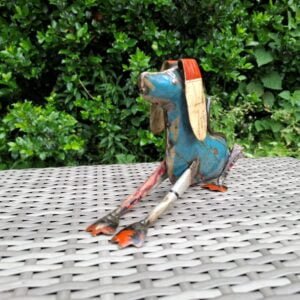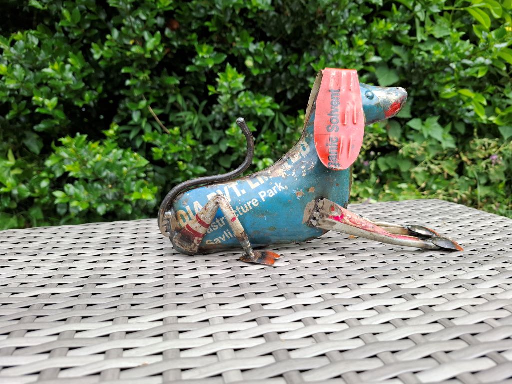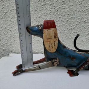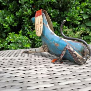 Leuke liggende hond, handgemaakt van gerecycled metaal.