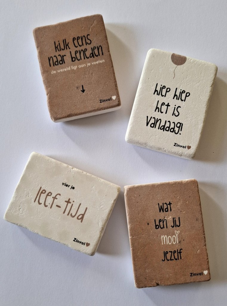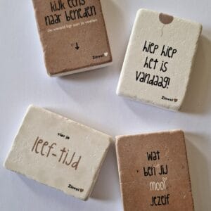 Deze magneten zijn gemaakt van 100% Travertin Natuursteen en geven een mooie landelijke en pure uitstraling. Een perfect kadootje om iemand iets liefs te zeggen op een subtiele manier.