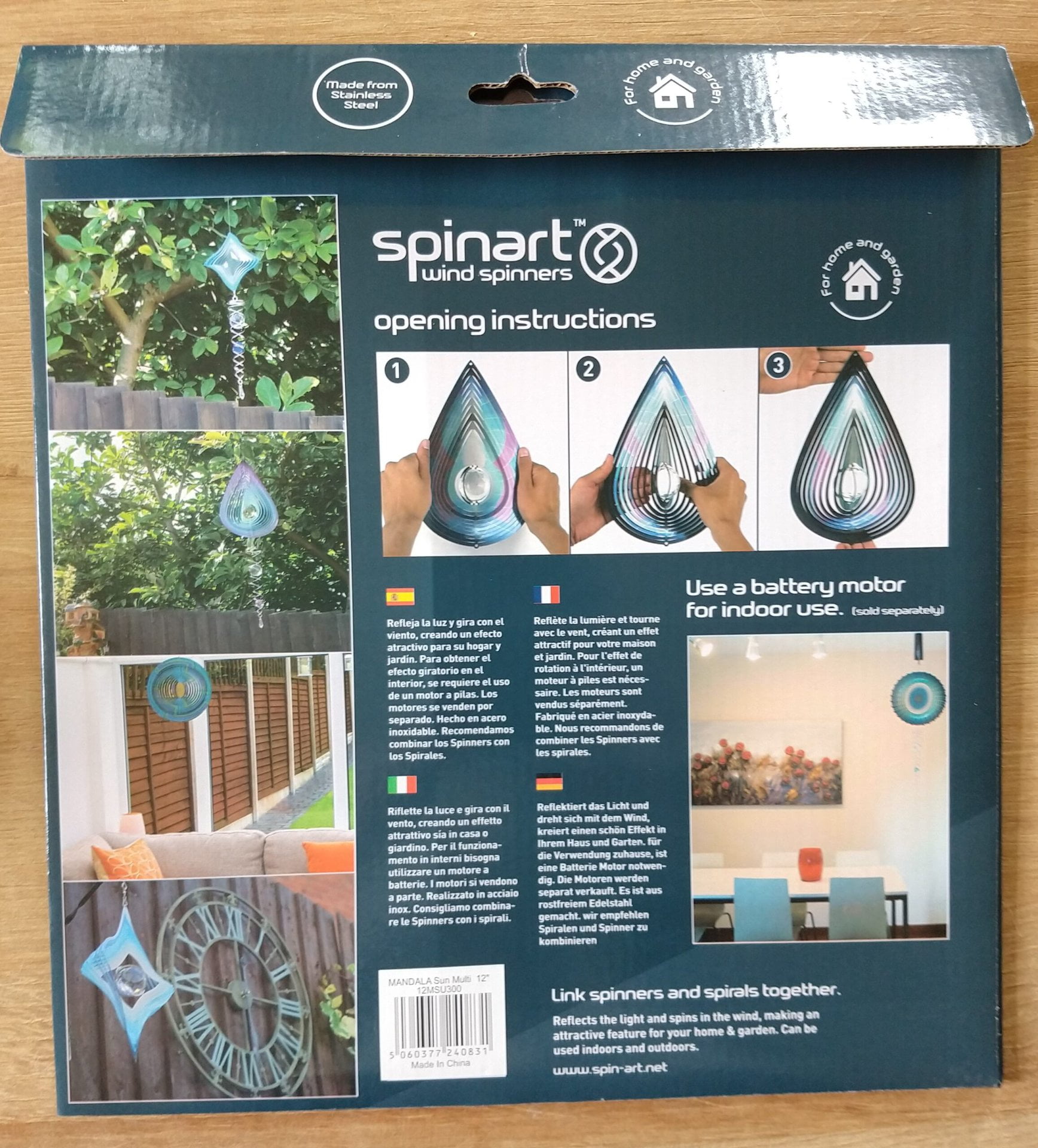 De spinner is gemaakt van roestvrij staal voor duurzaamheid en weerbestendig dus geschikt voor binnen of buiten.